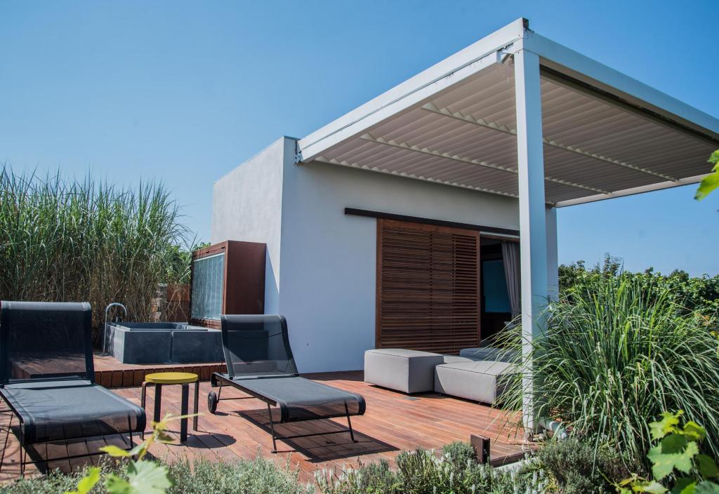Arredi semplici ma esclusivi in un ambiente minimale ma elegante rendono unico il soggiorno alla Tenuta di Castellaro. Ogni residenza è stata realizzata negli angoli più suggestivi della Tenuta ed è dotata di una grande vasca esterna in pietra lavica, che completa il patio attrezzato con comodi divanetti e chaise longue, per momenti di relax indimenticabili in un paesaggio da sogno.