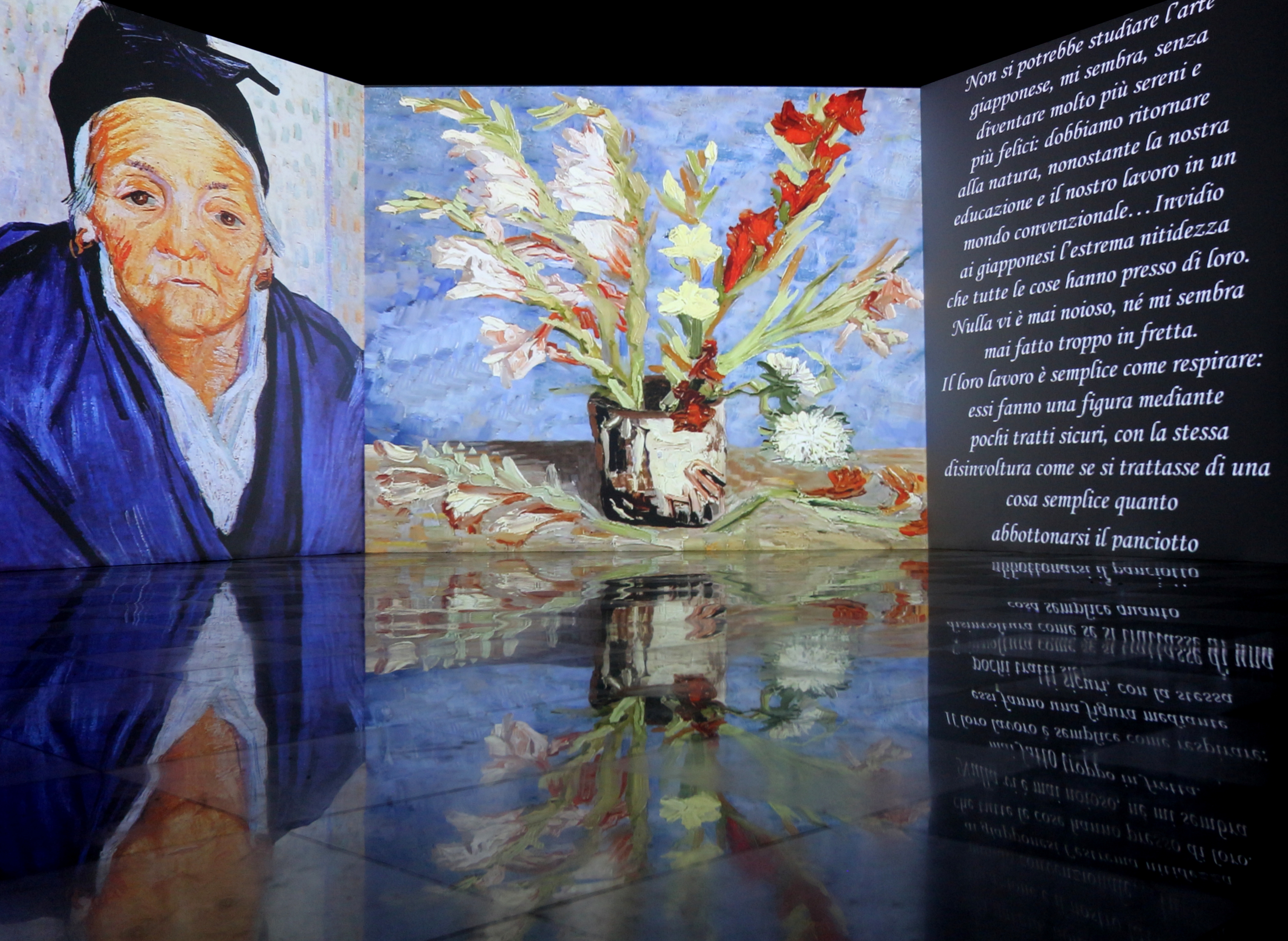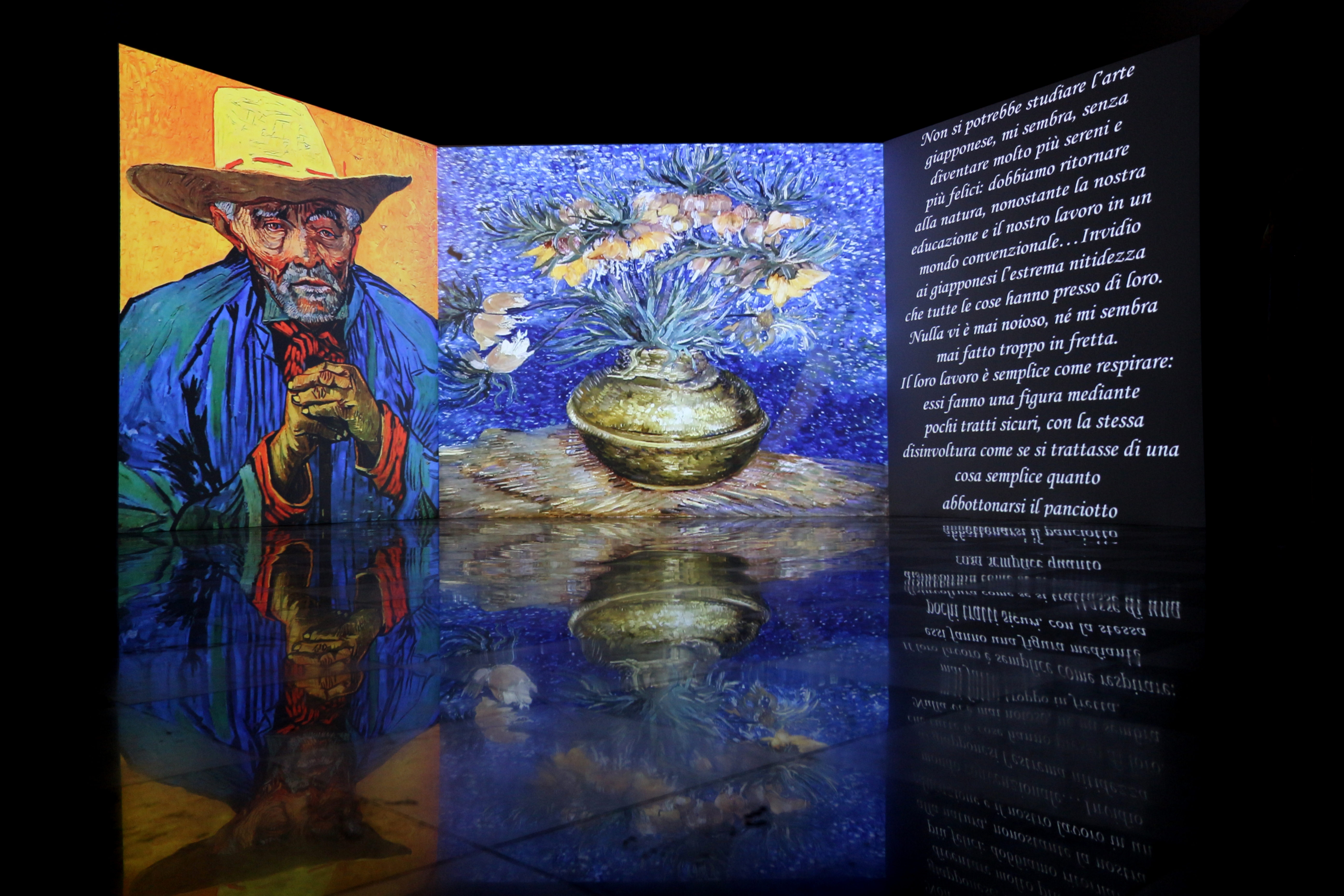 Il genio tormentato di Van Gogh e i suoi straordinari vortici di colori si possono sentire e toccare da vicino a Palazzo Dalla Rosa Prati, residenza d’epoca nel cuore di Parma ad un passo dal Battistero e dal Duomo. Qui si può soggiornare nelle eleganti camere e suites e poi immergersi nei celebri dipinti della mostra Van Gogh Multimedia & Friends, dal 31 gennaio al 26 aprile 2020. Con un grande coinvolgimento emotivo, scenografici supporti multimediali ad altissima qualità permettono di entrare nei capolavori del pittore olandese, che ha dato una svolta decisiva all’arte attraverso la rilevanza del colore, l’estrapolazione della natura insita nella realtà, l’importanza della materialità della pennellata nell’insieme dell’opera. Un viaggio tra diverse aree tematiche, dagli autoritratti, che rappresentano gli stati d’animo dell’artista, ai dipinti sui lavori artigiani e contadini, ai ritratti, i fiori, i luoghi di Van Gogh, le campagne olandesi e francesi in cui si rifugiava, gli influssi onirici orientali, i colori del tramonto e della notte. Nella stanza segreta di Vincent Van Gogh ci si immerge nei capolavori di autori amici come Monet, Degas e Renoir giunti da prestigiose collezioni private.L’esposizione prodotta dalla Navigare s.r.l. è aperta dalle 9.30 alle 20.00 dal lunedì al venerdì e fino alle 21.00 il sabato e la domenica. Biglietto intero 12 euro, gratis per i bambini fino a 6 anni (www.vangoghmultimediaexperience.it).
